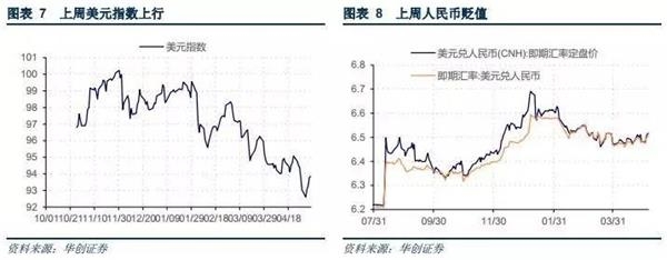 上周美元指數(shù)上漲,上周五收于93.8510點(diǎn),環(huán)比上漲0.86%(圖表7)。聯(lián)儲(chǔ)票委杜德利在上周表示市場低估聯(lián)儲(chǔ)加息的可能性,今年依舊可能加息兩次,受此影響,美元持續(xù)反彈,周五發(fā)布的非農(nóng)數(shù)據(jù)總體低于預(yù)期,但時(shí)薪上漲,就業(yè)結(jié)構(gòu)好轉(zhuǎn),美元當(dāng)日由跌轉(zhuǎn)漲。上周五美元兌人民幣即期匯率報(bào)收6.5023,環(huán)比上行168bp;美元兌離岸人民幣定盤價(jià)6.5170,環(huán)比上行352bp;離岸與在岸人民幣匯率差147bp(圖表8).