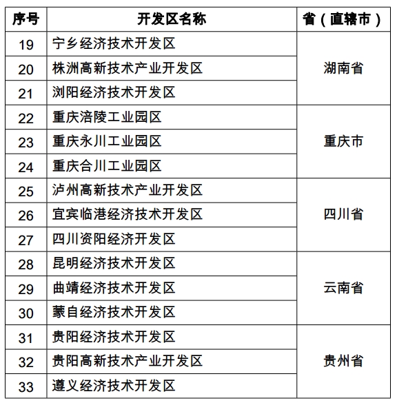 長(zhǎng)江經(jīng)濟(jì)帶國(guó)家級(jí)轉(zhuǎn)型升級(jí)示范開(kāi)發(fā)區(qū)名單