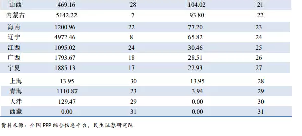 從表2可以看出,入庫項目規(guī)模和落地項目規(guī)模呈現(xiàn)正相關(guān),入庫項目規(guī)模排名靠前的貴州、山東、河南、四川等地表現(xiàn)不俗,落地項目規(guī)模遙遙領(lǐng)先。值得提出的是,北京雖然入庫項目總量不高,但隨著地鐵14和16號線、興延高速等大型項目相繼落地,PPP項目落地駛?cè)肟燔嚨溃涞匾?guī)模大幅提升。