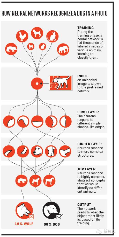 試想,要搜集含有狗的照片,應(yīng)用程序必須識別出從吉娃娃到德國牧羊犬這么多種類的狗,還不能因為小狗上下顛倒或左邊右邊被雪被霧遮住了一塊就被騙過。同時還要排除狼和貓。只靠像素。這究竟是怎么做到的?