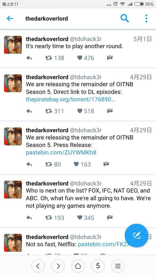 然而這事隨著時(shí)間推移不了了之,Larson Studios沒交贖金,而The Dark Lord也把目標(biāo)轉(zhuǎn)移到Netflix和其他更有錢的電視臺(tái)身上。在Netflix沒付贖金慘遭“撕票”后,The Dark Lord在Twitter上揚(yáng)言:該玩下一輪了,下一個(gè)找誰呢,F(xiàn)OX、IFC、國(guó)家地理還是ABC?